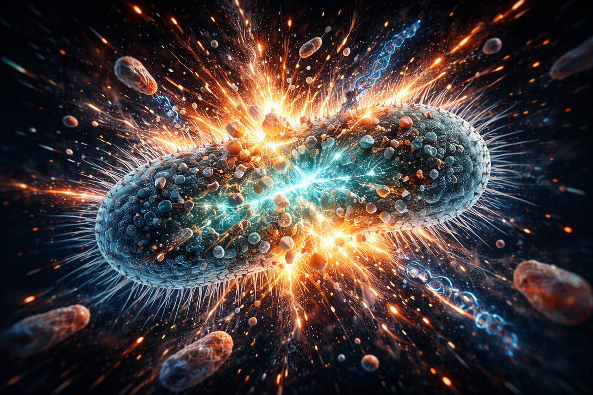 Uma nova descoberta científica revelou um comportamento surpreendente, e preocupante, das bactérias: algumas delas literalmente se “sacrificam” para ajudar outras a sobreviver. O estudo, conduzido por pesquisadores do John Innes Centre, mostra que certos microrganismos conseguem se romper propositalmente para espalhar genes, incluindo aqueles ligados à resistência a antibióticos.