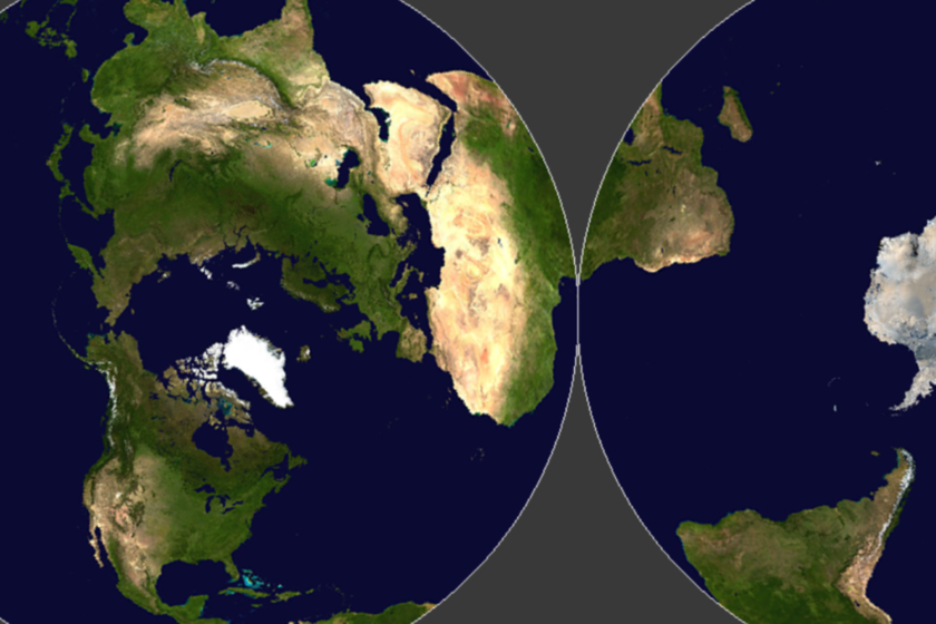 Astrofísicos da Universidade de Princeton redesenharam o mapa da Terra. Essa versão reduz ao mínimo as distorções ao transformar a superfície esférica em um plano. O formato resultante lembra um disco de vinil, em que cada lado corresponde a um dos hemisférios terrestres (norte e sul).