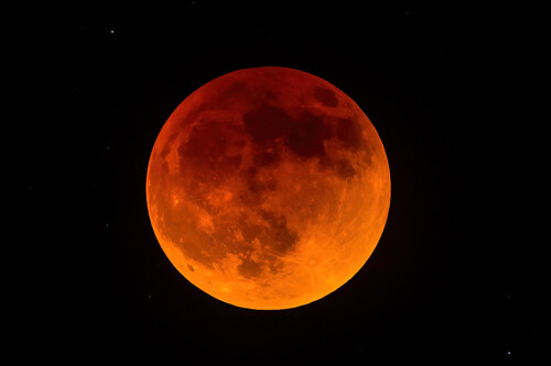 A Lua, porém, não desaparece completamente do céu como se imagina. Parte da luz do Sol atravessa a atmosfera da Terra antes de chegar até ela. Nesse percurso, os tons azulados são dispersados, enquanto os comprimentos de onda avermelhados conseguem passar com mais facilidade. Como consequência, a Lua exibe uma coloração em tons de cobre ou vermelho-escuro que marca o auge do eclipse.