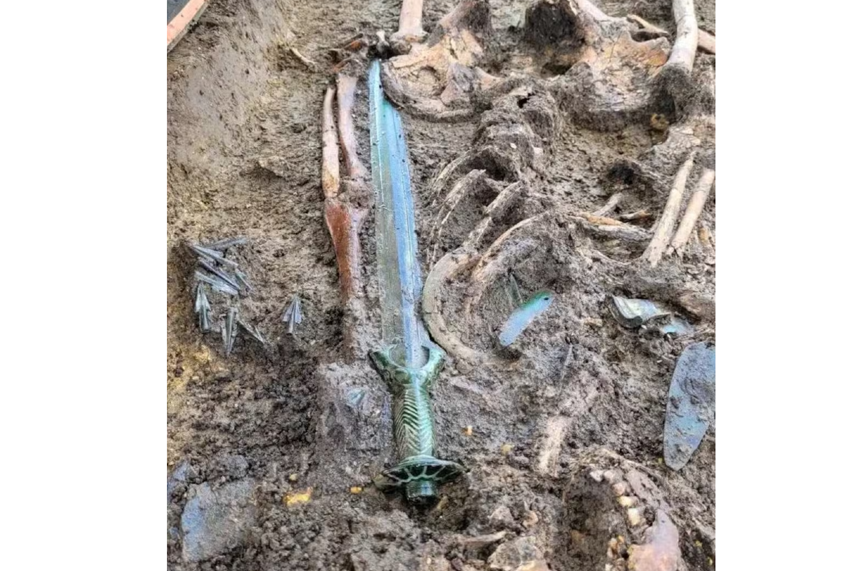 A espada foi localizada ao lado dos restos mortais de um homem, em uma sepultura que também continha os esqueletos de uma mulher e de uma criança, além de outros objetos de bronze possivelmente ligados a rituais funerários. O contexto chamou atenção dos pesquisadores porque muitas tumbas da região foram saqueadas ao longo dos séculos, o que torna a preservação do artefato ainda mais inacreditável.