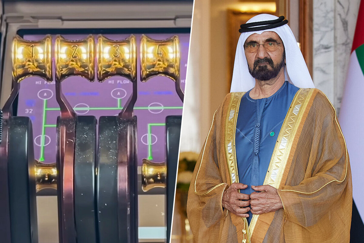 O xeique Mohamed bin Rashid Al Maktoum, emir de Dubai, não se limitou a transformar um dos maiores aviões do mundo em uma mansão voadora: ele também levou o luxo até a cabine dos pilotos, com os controles de motores, flaps e freios revestidos em ouro.