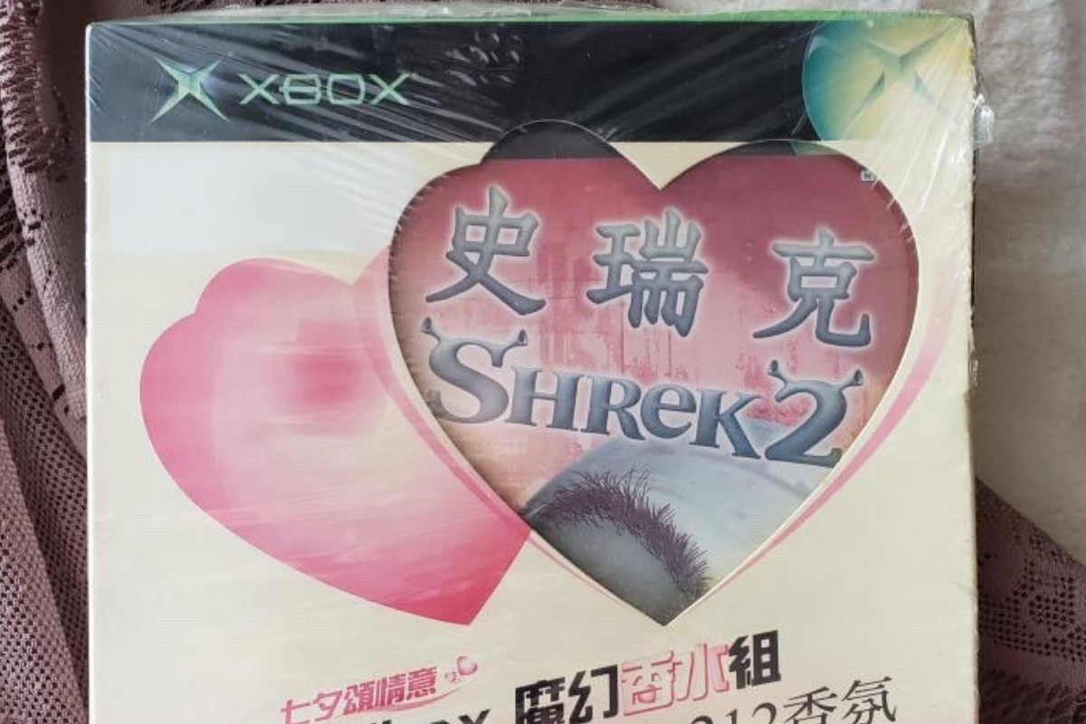 Here’s an obscure Chinese Valentine’s Day Edition Shrek 2 for Xbox. It’s bundled with a bottle of Carolina Herrera 212 perfume. I’ve checked with the biggest Xbox collectors out there and nobody else has seen or heard of this bundle, so I’m happy to be able to preserve this! pic.twitter.com/Ny6ltbOT4E