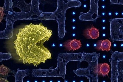 Pesquisadores conseguiram registrar, pela primeira vez, um vídeo que mostra células cancerígenas escapando ativamente do sistema imunológico. As imagens, captadas com técnicas avançadas de microscopia, revelam um comportamento surpreendente: em vez de serem simplesmente atacadas e destruídas, essas células se movem rapidamente para fugir das células de defesa, em uma dinâmica que lembra um jogo de Pac-Man.