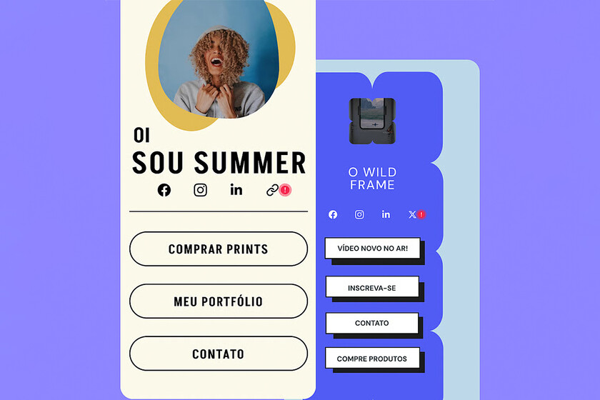 Por isso, o link na bio deixou de ser só uma lista de botões. Em muitos casos, ele virou uma forma rápida de concentrar portfólio, produtos, canais de contato e recomendações em uma única página. Mesmo sendo menos robusto que um site completo, esse formato ainda é muito mais útil do que as bios das redes sociais, por permitir mais personalização e direcionar melhor o usuário ao objetivo final de quem está do outro lado.