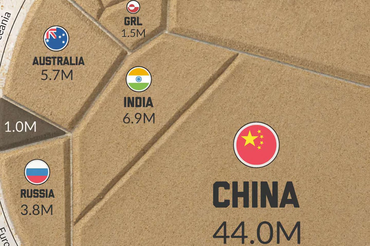 Bem distantes na lista estão países como Austrália (5,7 milhões), Rússia (3,8 milhões), Vietnã (3,5 milhões), Estados Unidos (1,9 milhão) e Groenlândia (1,5 milhão), se considerarmos aqueles que ultrapassam um milhão de toneladas. O mais impressionante é que o total mundial é estimado em cerca de 92 milhões de toneladas métricas, portanto a China detém aproximadamente 50% das reservas.