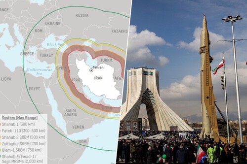 De fato, a Grécia também se encontra dentro do mesmo arco, com a Baía de Souda, em Creta, a 2.300-2.400 quilômetros do Irã. Atenas, Sófia e Bucareste estão entre as capitais que se encaixam confortavelmente dentro do raio de 2.000 quilômetros.