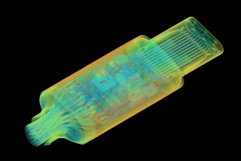 USB-C de Apple sob raio-x. | Vídeo: Lumafield