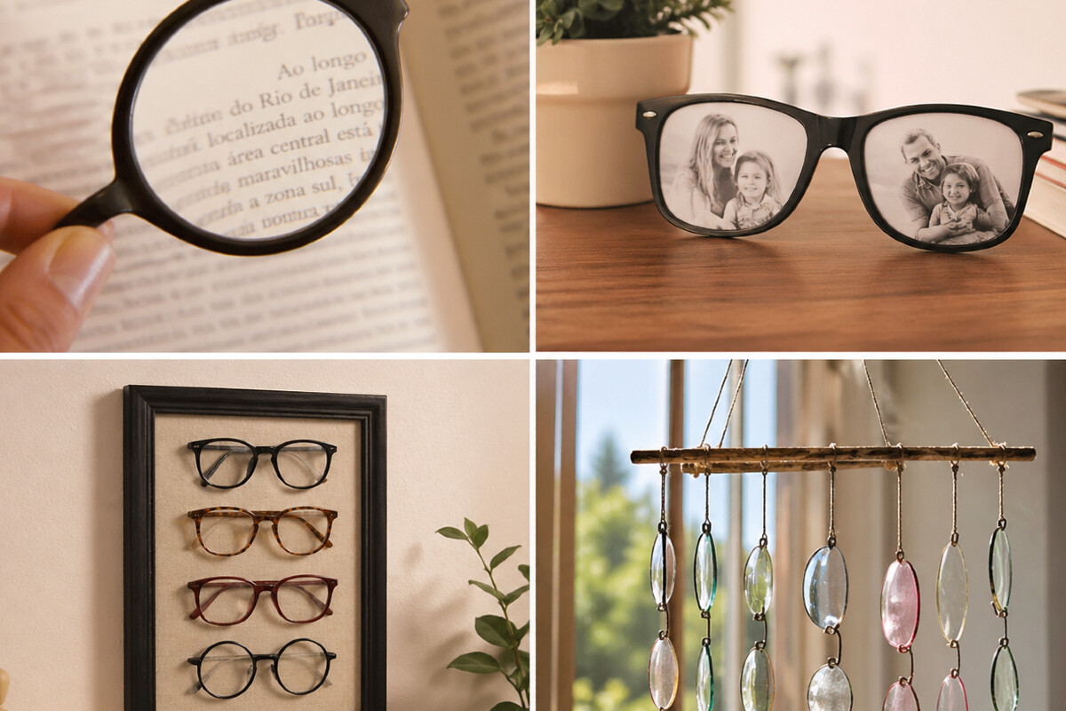 Entre as possibilidades mais úteis, transformar os óculos antigos em uma lupa é uma das mais práticas. As próprias lentes já foram feitas para ampliar ou ajustar a visão, então podem ser reaproveitadas no dia a dia para leitura de letras pequenas, rótulos ou trabalhos manuais.
