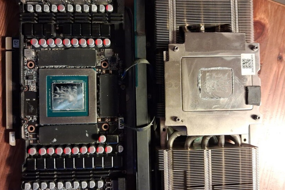 Em seguida, a placa de vídeo, que havia sido atualizada "profissionalmente", foi prontamente removida e aberta novamente. O usuário do Reddit comentou sobre isso com a observação reveladora: "Não, eu ainda não limpei a pasta térmica, ela realmente veio assim."