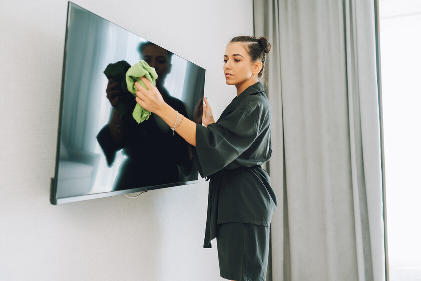 Limpar a tela de uma televisão não é uma missão muito complicada. O grande segredo está em usar um pano de microfibra e água destilada. Isso porque esse tipo de pano não risca a superfície e evita fiapos, enquanto a água destilada não deixa marcas porque não contém sais minerais. Fabricantes como LG, Samsung e Sony recomendam também o uso de limpadores específicos para telas, mas eles devem sempre ser aplicados no pano e nunca direto na TV.