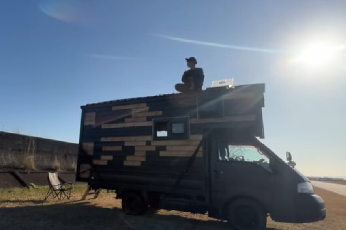 Os motorhomes são veículos que integram transporte e moradia, então costumam exigir modificações definitivas e estruturas caras, pensadas para quem aceita transformar o veículo em uma casa permanente. Mas Yudai Kawase queria algo diferente. A ideia era criar uma casa sobre rodas funcional sem abrir mão da versatilidade do veículo. O ponto de partida do projeto foi um caminhão de uso cotidiano, desses pensados para transporte leve e tarefas do dia a dia. Desde o início, Yudai estabeleceu uma regra clara: a estrutura não poderia comprometer o veículo de forma permanente. Nada de cortes irreversíveis ou adaptações que o tornassem exclusivo para viagens.