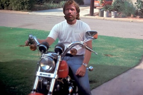 Um de seus inúmeros filmes, nos anos 80, foi The Delta Force. Nele, Chuck subia em uma moto que parecia saída do futuro, uma trail preparada até o limite e pensada para o filme. A ideia era que o veículo parecesse capaz de realizar operações militares, conforme o roteiro.