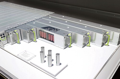 Por quê? A resposta curta é: por causa da IA. A resposta longa é que a IA não pode parar nem por um segundo, portanto os equipamentos precisam de fontes de energia de reserva. Essa energia vem de baterias instaladas entre os racks, das quais os sistemas “puxam” em caso de qualquer queda ou pico de energia para continuar operando. E como esses equipamentos exigem uma quantidade absurda de energia para funcionar, é necessário produzir muitas, muitas baterias de backup.