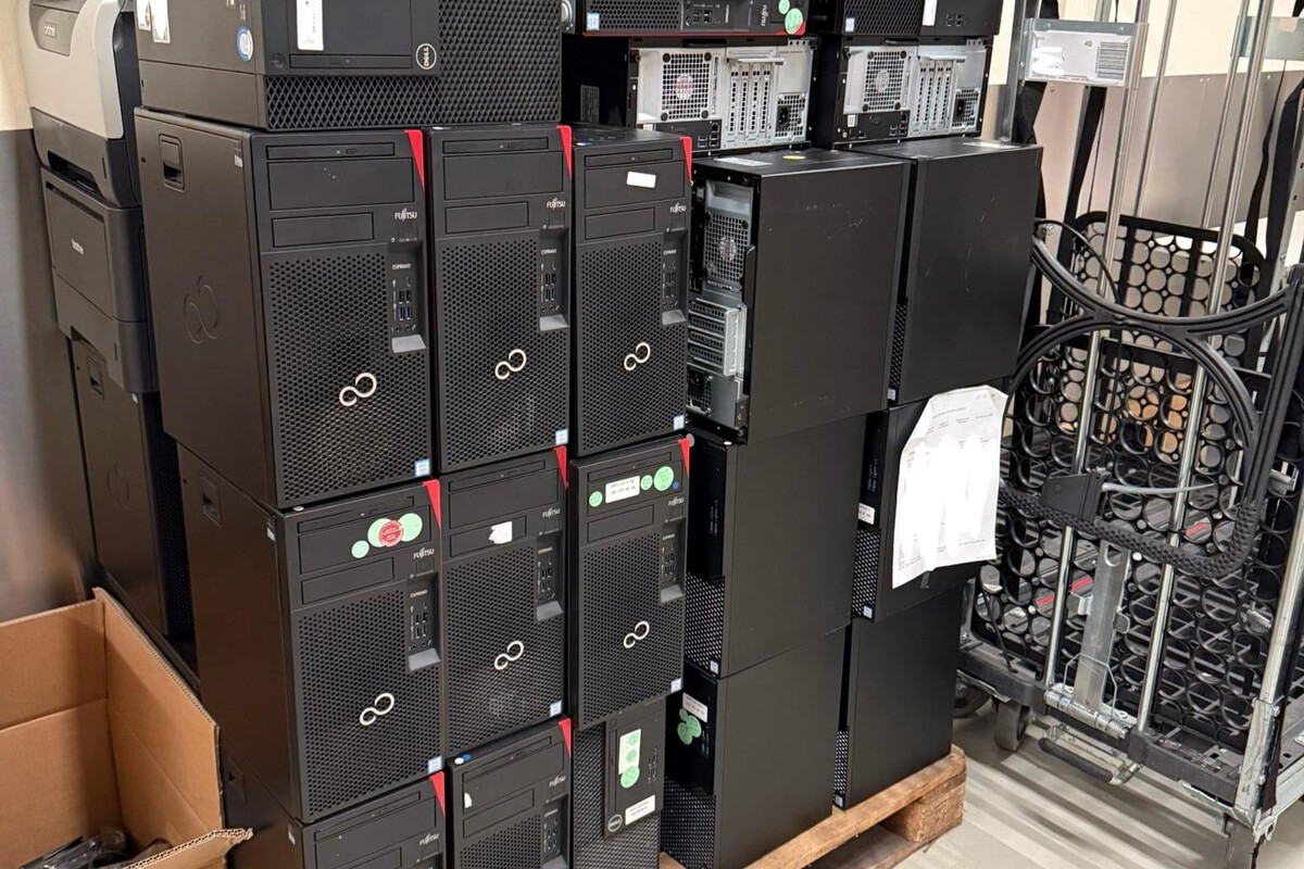 A postagem no subreddit PCMR do usuário “LucasCBs” mostra uma imagem fácil de entender: em um palete europeu estão empilhadas cerca de 30 torres de PC pretas de uma marca japonesa, que lembram os computadores clássicos usados por empresas e órgãos governamentais — PCs de escritório padrão, por assim dizer.