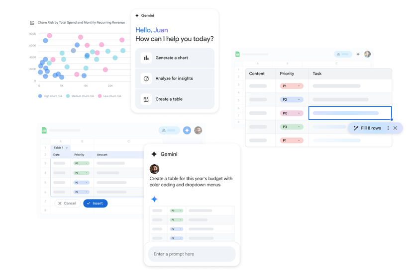 O Google Workspace revoluciona esse cenário ao integrar a Inteligência Artificial (IA) diretamente ao Google Sheets. A IA do Gemini transforma o Sheets de uma simples ferramenta de cálculo em um poderoso assistente de análise de dados, permitindo que gestores e usuários de todos os níveis resolvam problemas práticos com comandos simples de linguagem natural.